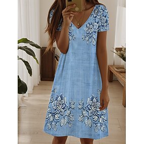 Női Térdig érő ruha Nyári ruha Pólóruha A vonalú ruha Szabadság Alkalmi Boho Tengerpart Normál Virágos Grafika Rövid ujjú V-alakú Medence Arcpír rózsaszín Rubin Narancssárga Nyár Tavasz