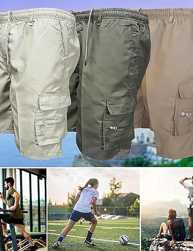 Férfi Rövidnadrágok Nyári rövidnadrág Zsinór Rugalmas derék Többzsebes Sima Mokaszinok Viselhető Rövid Szabadtéri Sport Napi Divat Alkalmi Khakizöld Szürke