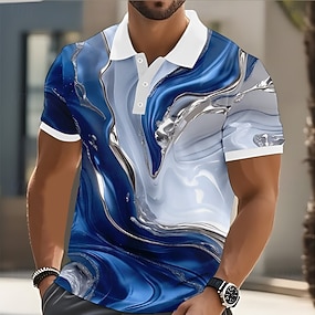 Férfi Márvány Pólóingek Rövid ujjú Pólóingek Hajtóka Alkalmi Sportruházat Hétköznapi viselet 3D nyomtatás Gombok Tavaszi nyár Medence Kék tó