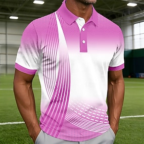 Férfi Golf Színátmenetes csíkok Gofris pólóingek Golfing Rövid ujjú Pólóingek Galléros ingek Sportruházat Alkalmi Szabadtéri Sportruházat Hétköznapi viselet 3D nyomtatás Gombok Nyár Medence Bíbor