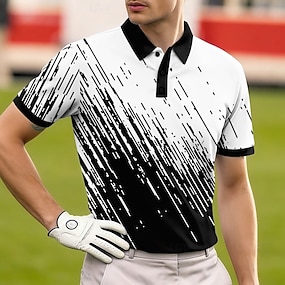 Férfi Golf Fröccsenő tinta Póló Sportpólóingek Rövid ujjú Pólóingek Galléros ingek Alkalmi Sportruházat 3D nyomtatás Gombok Nyár Fekete Fehér