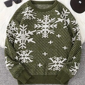 Karácsony Férfi Hópehely Pulóver pulóver Kötöttáru Kerek nyakkivágás Alkalmi Vakáció Otthon Utca 3D nyomtatás Kötni Melegen tartani Hosszú ujj Tavasz Ősz Tél Fekete Lóhere
