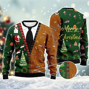 karácsony férfi karácsonyi jelenet csúnya pulóverek alkalmi mikulás fa levél csúnya pulóver pulóver kötés nyomtatás szabadtéri napi hosszú ujjú nyakú ősz tél zöld s m l