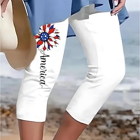 Függetlenség Napja Hazafias Női Chino Rövidnadrág Vakáció Vintage Nem hivatalos Rövid Magas Derejú Nadrág Grafikus Zászló Ráncolt Rugalmatlan Napi Szabadtéri Vakáció Piros Lila Zöld Khaki Nyár Tavasz