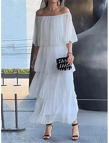 Női Maxiruha A vonalú ruha nyári ruha Alkalmi Napi Laza öltözet Sima Féhosszú Aszimmetrikus Fehér Nyár Tavasz