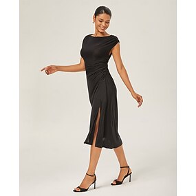 Nő hétköznapi ruha Fekete Pántok Sima Nyár Ősz Cross-Season Csónaknyak Elegáns Modern XS S M
