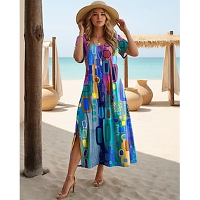 Női Midi Ruha V Nyakú Hosszú Ujjú Kaftán Könnyű Laza Fit Shift Ruha Menő Laza Fit Grafika Geometrikus Absztrakt Hosszú Ujjú V Nyak Kék Lila Narancs Zöld Ősz
