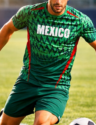 Férfi Mértani Levél & Szám Mexikó Foci nyár Globális egyezés Majica za trčanje Nyár Rövid ujjú UPF 50 Gyors szárítás Légáteresztő Tornaterem Track Fitnesz Zöld sportruházat Sportruházat