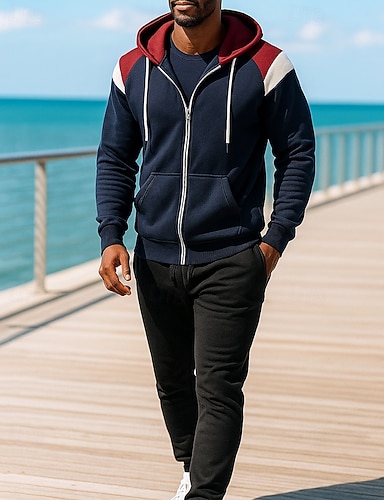 Karácsony Férfi Futóruha Teljes cipzáras pulóver Sport melegítőruhák Kapucni zsebbel Színes Ruházat Ősz & tél Fekete Bor Túrázás Hivatás Utazás Hosszú ujj Sport Sportruházat Mikroelasztikus Normál