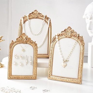 vintage gyantából készült ékszertartó állvány – európai stílusú íves szervező arany szegéllyel nyakláncokhoz, karkötőkhöz, fülbevalókhoz – több méretben kapható