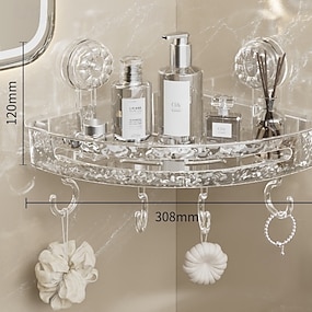 könnyű, luxus stílusú, lyukasztásmentes tárolóállvány, tapadókorongos sarokpolc, fürdőszobai háromszög alakú szervező, falra szerelhető, fúrás nélküli mosdóállvány piperecikkek és egyéb kellékek