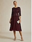 Női Midi ruha A vonalú ruha Elegáns Esküvői vendég Estély Normál Tömör szín Háromnegyedes Terített nyak Bor Tavasz Ősz Tél