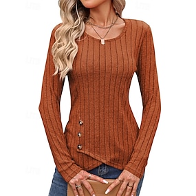 Női Textúra blúz Póló Tee Top Sima Divat Modern Hosszú ujj Szögletes Normál felsők Napi Alkalmi Gombok Gesztenyebarna Fekete Rubin Világosbarna Medence Tavasz Ősz