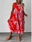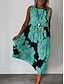 Női Szabályos Maxiruha Boho ruha Pamut vászon ruha Elegáns Szüret Tengerpart Normál Grafika Ujjatlan Terített nyak Rubin Lóhere Nyár