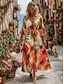 Női Hosszú ruha Maxi ruha hétköznapi ruha A vonalú ruha Elegáns Szüret Stílusos Vakáció Parti Napi Laza öltözet Virágos Hosszú ujj V-alakú Medence Bíbor Narancssárga Tavasz Ősz