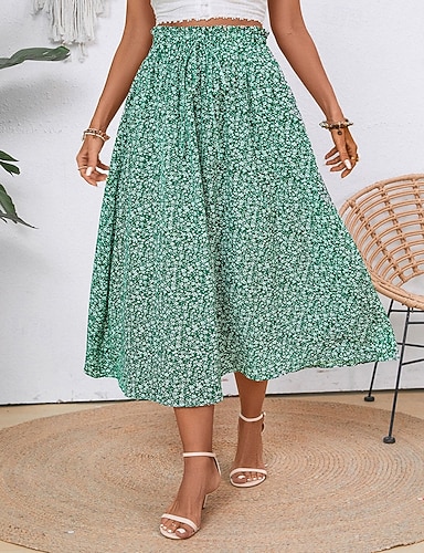 Női Midi ruha Boho ruha Sifon ruhák Virágos ruha Divat Modern Vakáció Szabadság Normál Virág Rövid ujjú V-alakú Medence Világoszöld Rubin Sötétkék Nyár