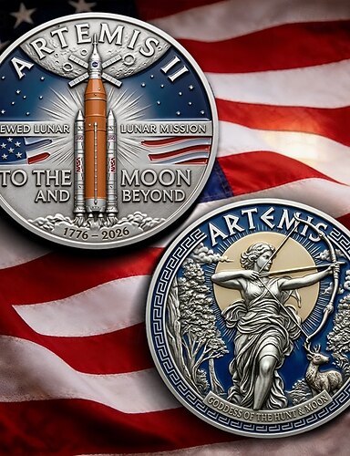 Artemis II holdmisszió emlékérme, 2026-os legénységgel rendelkező holdra szállás tisztelgés, űrhajós &rakétagyűjtői tárgy, amerikai űrprogram történelmi emléktárgy