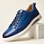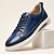 Férfi kék színű, valódi bőrből készült, fűzős, könnyű, kényelmes cipők mindennapi viseletre, utazásra, ingázásra, hétvégi kirándulásokra és elegáns, lezser stílusra