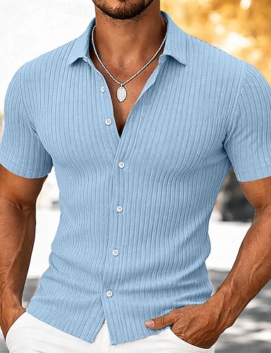 Férfi Ing Bordázott kötött Alkalmi ing Gombos póló Fehér Szürke Világoskék Fekete Rövid ujjú Sima Állógallér Hétköznapi Napi Elülső zseb Ruházat Elegáns Divat Alkalmi