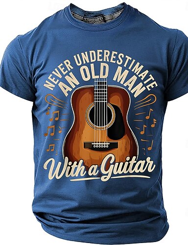 férfi sose becsüld alá egy öregembert gitárral akusztikus gitár hangjegyek vintage retró póló grafikus normál szabású apák napi ajándék designer ruházat s m l xl xxl xxxl