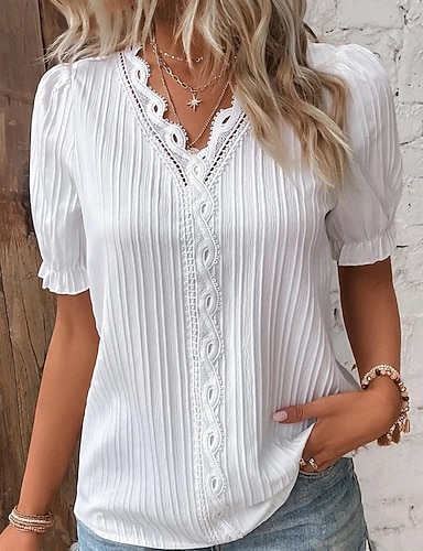 Női Blúz Csipke felsők Hosszú ujjú felsők Csipke Sima Stílusos Klasszikus Modern Hosszú ujj V-alakú Normál felsők Napi Szabadság Alkalmi Fehér Nyár Tavasz