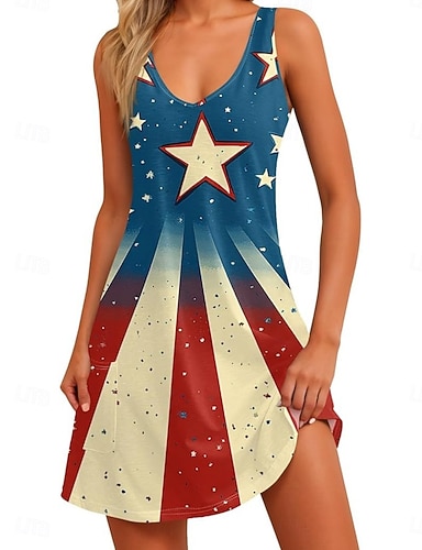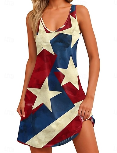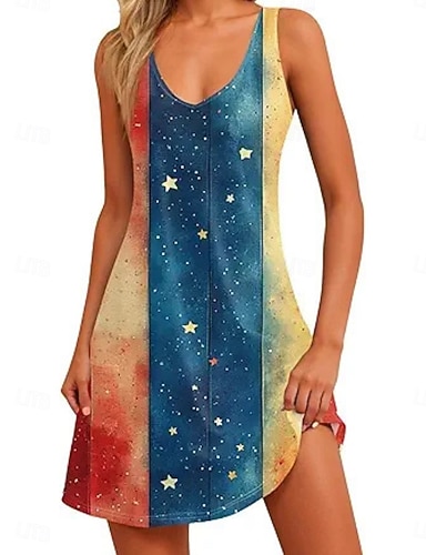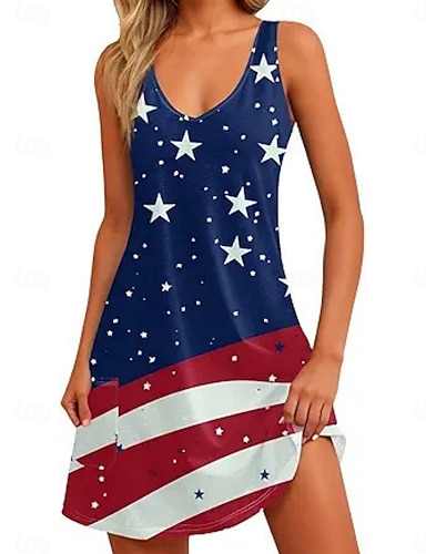 Függetlenség Napja Női Mini ruha hétköznapi ruha Slip ruha Divat Klasszikus Modern Szabadtéri Vakáció Alkalmi Normál Csillagok és sávok Ujjatlan V-alakú Medence Rubin Tengerészkék Világoskék Nyár