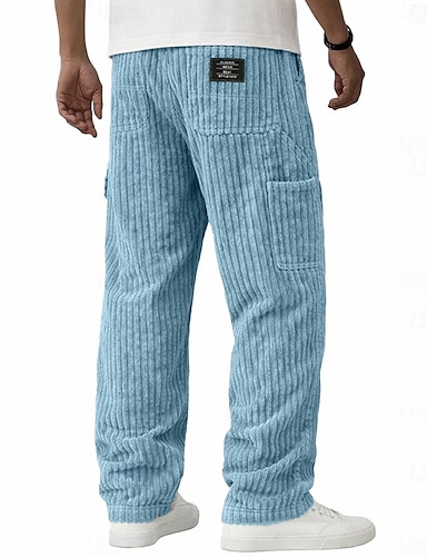 Férfi Nadrág Kordbársony Nadrág Téli nadrág Alkalmi nadrág Bő nadrág Zsinór Többzsebes Egyenes lábbal Tömör szín Mokaszinok Teljes hossz Hétköznapi Napi Szabadtéri Divat Utcai sikk Fehér Sötétkék