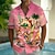 Férfi Virágminta Etno Virágok Ing Guayabera ing Gombos póló Rövid ujjú Vintage Retro Vakáció Alkalmi / Napi Nyár Tavasz Térfogatcsökkenés 3D nyomtatás Vászonszerű ing Medence Arcpír rózsaszín Lóhere