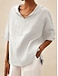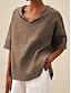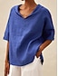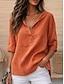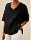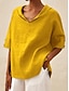 Női Blúz Művászon ing Sima Stílusos Alkalmi Háromnegyedes V-alakú Normál felsők Napi Medence Fekete Fehér Sárga Narancssárga Nyár Tavasz Ősz