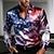 2026. július 4. 250. Férfi Tömör szín Amerikai amerikai zászló Póló Rövid ujjú póló 3D nyomtatás Terített nyak Ing Vintage Retro Hazafias Napi Fesztivál Fekete Fehér Nyár Tavasz Ruházat S M L XL XXL