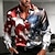 Férfi Július 4-én, az Egyesült Államok 250. évfordulóján Amerikai zászló Koponya Ing Szatén ing Nyári póló Hosszú ujj Hazafias Szabadtéri Fesztivál Nyár Tavasz Térfogatcsökkenés 3D nyomtatás Fehér