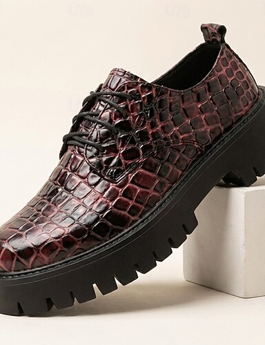 férfi bordó, krokodilmintás, casual cipők, fűzős, vastag talpú, kényelmes sétacipők, divatos, alacsony szárú lábbelik mindennapi viseletre, utazáshoz, hétvégi kirándulásokhoz és elegáns, lezser stílushoz