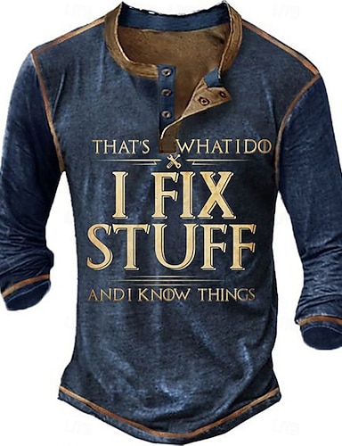 Férfi Henley ing Pólók Grafika Szöveg Megjavítom a dolgokat, és tudom a dolgokat Henley Ruházat 3D nyomtatás Szabadtéri Hétköznapi Rövid ujjú Kollázs Gomb lefelé Divat Dizájn Stílusos Szüret