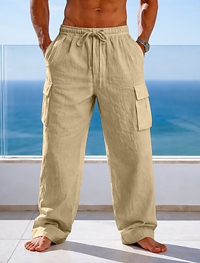 Férfi Vászon nadrág Nadrág Nyári nadrág Bő nadrág Strand nadrág Zsinór Rugalmas derék Egyenes lábbal Tömör szín Kényelmes Légáteresztő Teljes hossz Napi Tengerpart Szabadság Szabadság Divat Medence