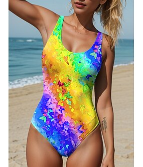 Női egyrészes fürdőruha Karcsúsító Monokini Bugyi Poci Kontroll Magas Derék Slim Háttal Szabadidő Vintage Ombre Grafikai U Nyakú Ujjatlan Fürdőruhák