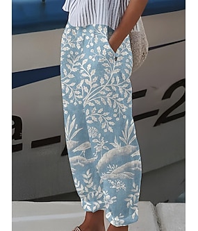 Női pamut vászon nadrág bő nadrág vászon hatású laza kényelmes teljes hosszúságú közepes derék növény mintás kényelmes légáteresztő mikro-rugalmas világos sárga világos rózsaszín búff áttetsző kék