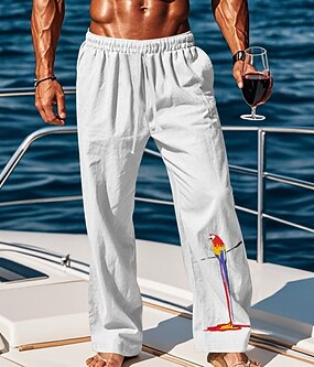 Férfi Vászon nadrág Nadrág Nyári nadrág Bő nadrág Strand nadrág Zsinór Rugalmas derék Egyenes lábbal Sima Mokaszinok Légáteresztő Teljes hossz Szabadtéri Napi Szabadság Szabadság Divat Fekete Fehér