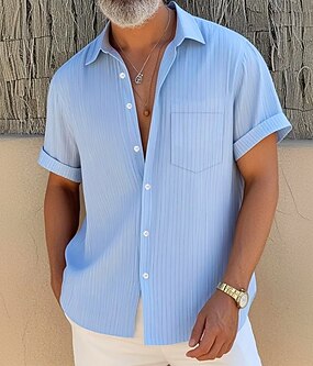 Férfi Ing Gofri ing Alkalmi ing Munkaingek Gombos póló Medence Fekete Lóhere khakizöld Szürke Rövid ujjú Sima Kubai nyakörv Hétköznapi Napi Elülső zseb Ruházat Elegáns Divat Alkalmi