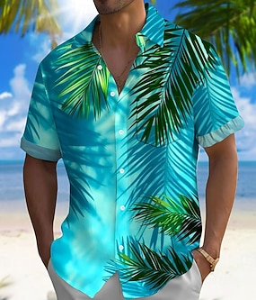 Férfi Falevél Trópusi növények Hawaii ing Gombos póló Aloha ing Rövid ujjú Hawaii Üdülő Vakáció Szabadság Strandruházat Nyár Tavasz Térfogatcsökkenés galléros ingek Első egy zseb Medence