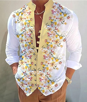 Férfi Virágos Ing Gombos póló Hosszú ujj Alkalmi Hétköznapi viselet Alkalmi Hétvége Tavaszi nyár Álló gallér Nyomtatott Gomb lefelé Sárga Arcpír rózsaszín Medence Bíbor
