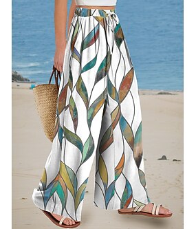 Női Széles lábszár Pamutszövet nadrág Bő nadrág Strand rövidnadrág Szabadság Divat Etnikai stílus Teljes hossz Magas derék Virágos Grafika Absztrakt Nyomtatás Mekano Légáteresztő Mikroelasztikus