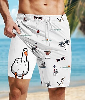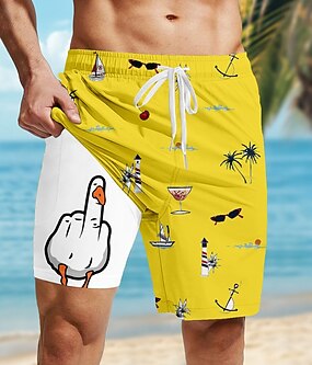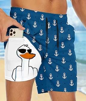 Férfi Horgony Vicces Kacsa Bélelt rövidnadrág 2 az 1-ben úszónadrág Úszónadrágok Közepes csípő Hawaii Vakáció Strandruházat Oldalzsebek Compression Linerrel Elasztikus húzózsinóros derékrész Tervező