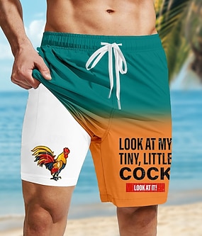 Férfi Flamingó Vicces Kacsa Bélelt rövidnadrág 2 az 1-ben úszónadrág Úszónadrágok Közepes csípő Hawaii Vakáció Szabadság Strandruházat Oldalzsebek Compression Linerrel Elasztikus húzózsinóros