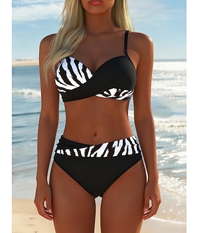 Női Fürdőruha Bikini 2 darab Merész Fürdőruha Vékony Nyitott hátú Szabadság Strandruházat Zebra minta V-alakú Ujjatlan Fürdőruhák