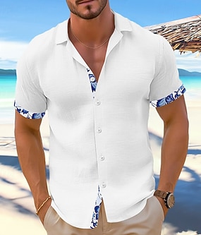 Férfi Ing Vászon ing Nyári póló Strandruházat Sima Vakáció Hétköznapi Fekete Fehér Arcpír rózsaszín Medence Rövid ujjú Hajtóka Nyár Tavaszi nyár Ruházat