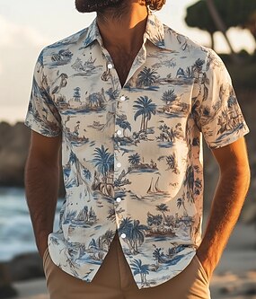 Férfi Kókuszfa Természet és tájak Trópusi növények Hawaii ing Gombos póló Aloha ing Rövid ujjú Hawaii Vakáció Nyár Tavasz Térfogatcsökkenés 3D nyomtatás galléros ingek Első egy zseb Medence Fekete