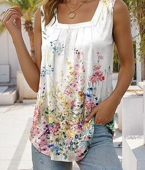 Női tankini 2 részes fürdőruha pálma fiú láb hasformáló magas derekú karcsúsított hátsó nélküli nyaralás strandruha virágos csíkos U-nyakú ujjatlan fürdőruha
