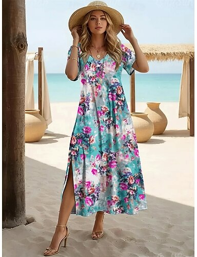 Női Maxi hosszú ruha hétköznapi ruha A vonalú ruha Nyomtatott ruha Divat Modern Szabadtéri Tengerpart Vakáció Normál Virágos Grafika Rövid ujjú V-alakú Medence Nyár Tavasz