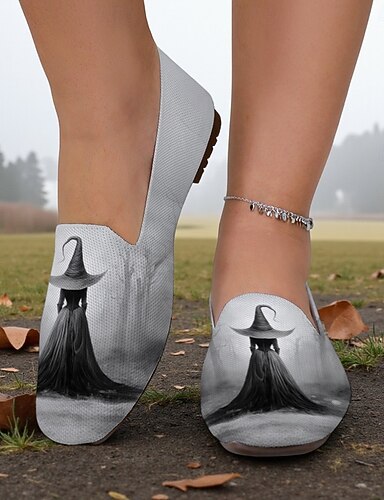 Női Slip-Ons Nyomtatási cipők Flyknit cipő Kényelmes cipők Napi Virágos Rajzfilm Galaxis Lapos Kerek orrú Zárt orrú Alkalmi Kényelmes Repülő szövés Papucs Fekete / Bézs Fekete Tengerészkék
