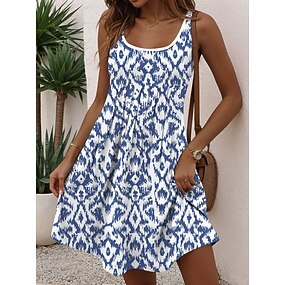 Női Mini Ruha Petites Ruha Napruha Nyári Ruha Pántos Ruha Kényelmes Vakáció Mindennapi Koktél Parti Szabványos Illeszkedés Nyomtatott Ujjatlan Pántos Kicsúsztatható Kék Nyár Tavasz